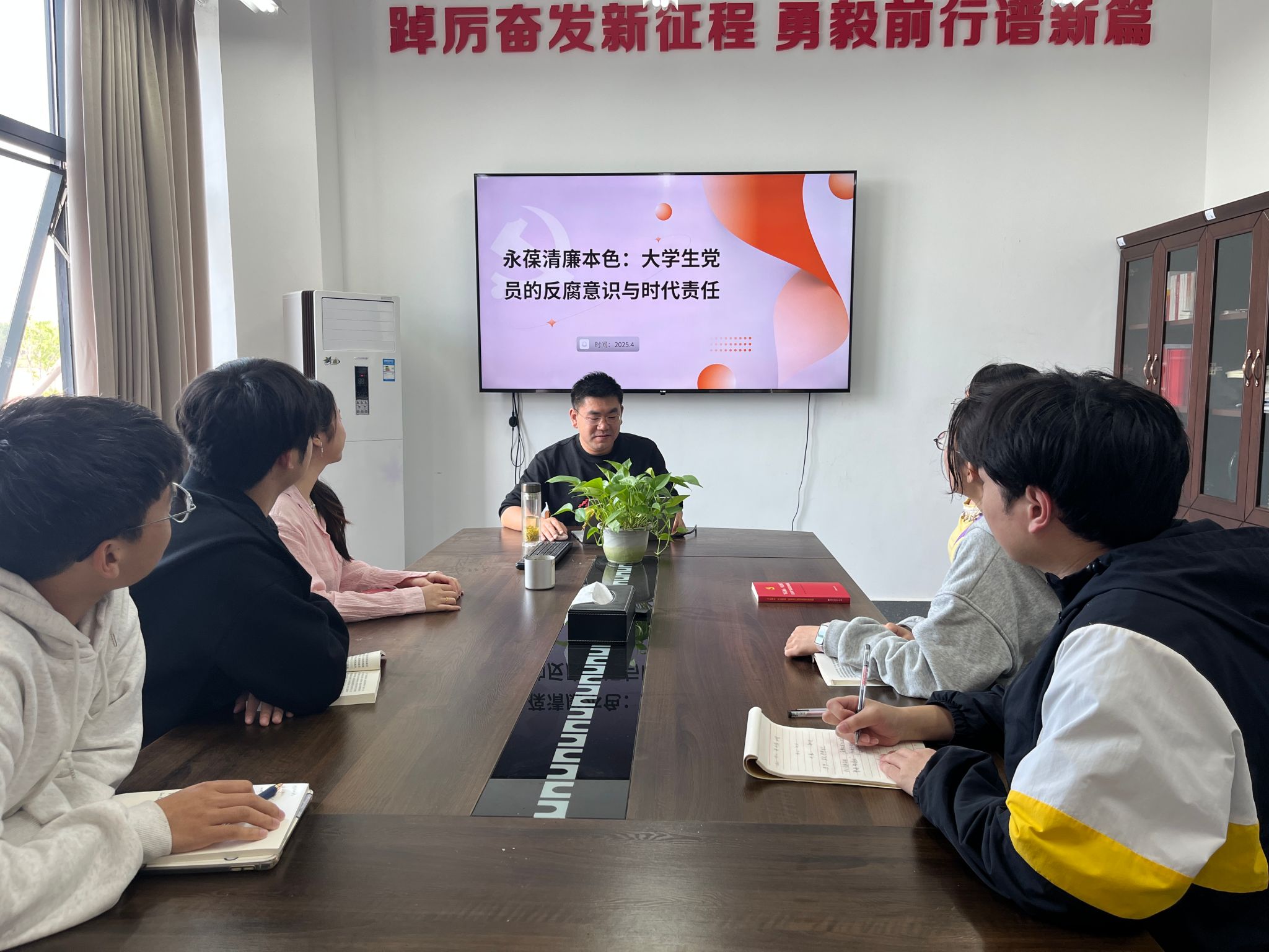 朱书记以高校反腐案例为引,剖析腐败根源,强调青年党员需严守学术诚信、员工工作纪律,筑牢廉洁思想根基。