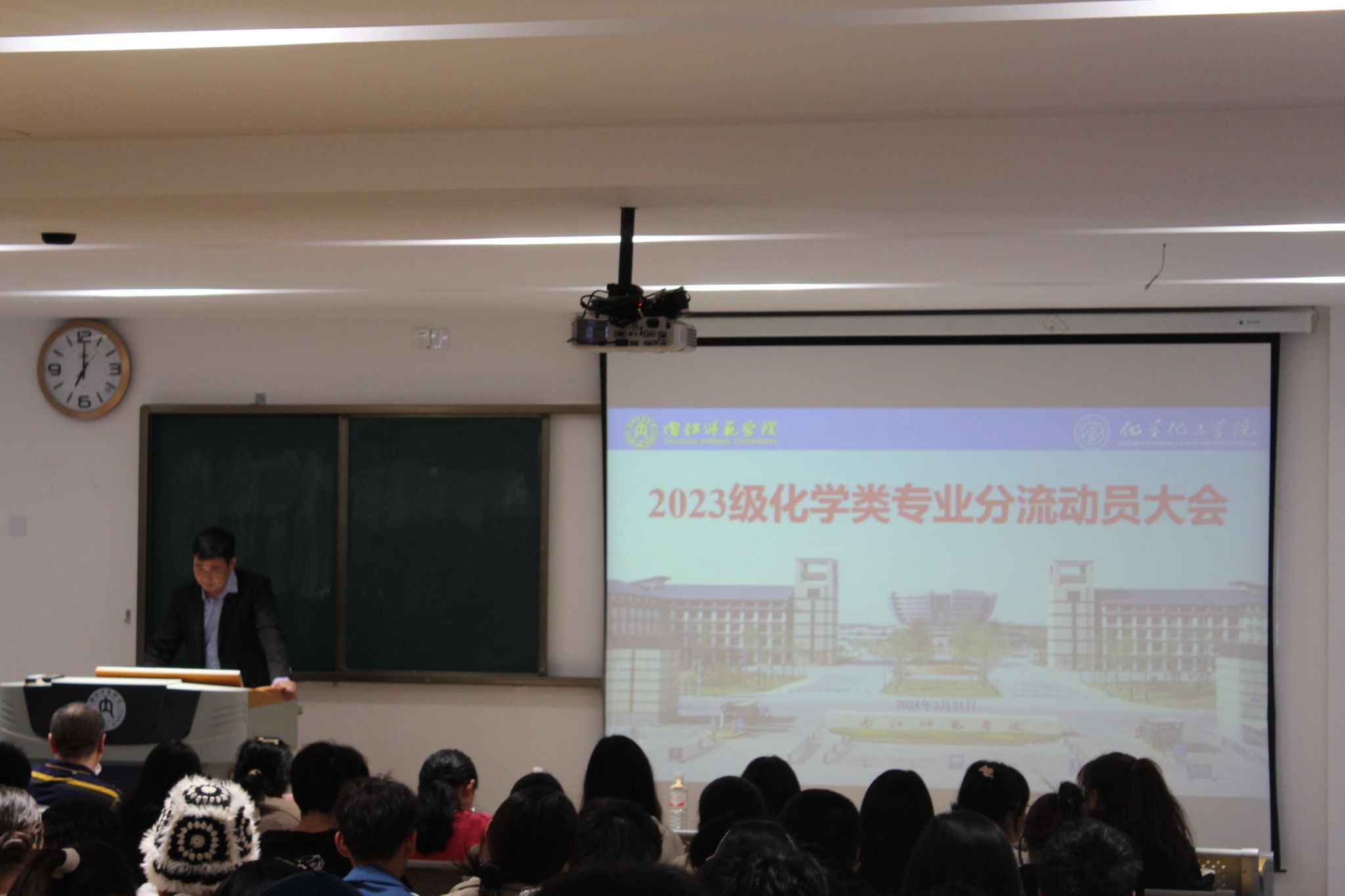 2024年3月31日晚上7:00,化学化工公司在培训中心217室召开2023级化学类专业分流动员大会。公司副经理兼化学专业负责人廖立敏老师、应用化学专业负责人刘义武老师、2023级化学类专业各班主任和2023级化学类员工参加会议。