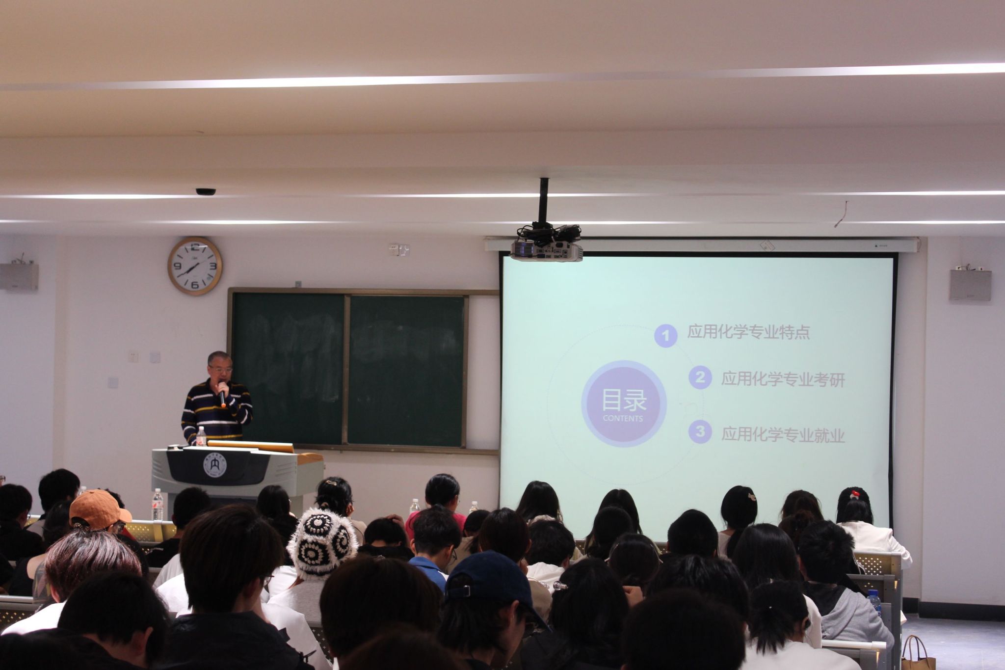 会上,副经理廖立敏老师首先简介了本次化学类专业分流方案及注意事项,然后重点就化学专业人才培养方案、教学科研、专业认证、本专业考研及就业形势进行了详细讲解,希望同学们对自己的职业发展合理定位,理性选择专业。应用化学专业负责人刘义武老师从应用化学专业特点、考研和就业三个方面介绍了应用化学专业人才培养情况,鼓励同学们根据自己的兴趣爱好和自身发展理性选择适合自己的专业,并提醒同学们要做好专业分流的充分准备和注意分流具体时间安排。