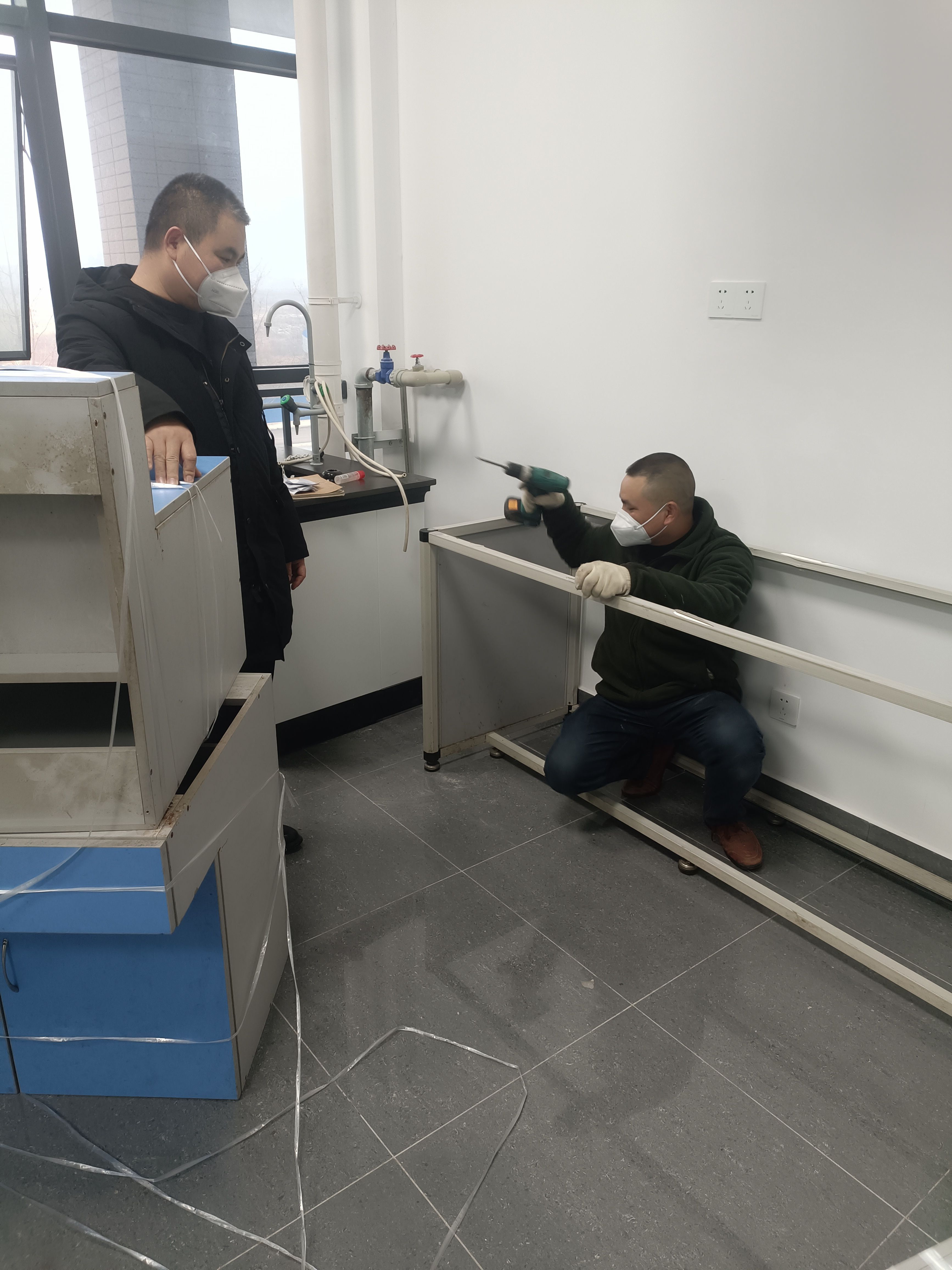 2022年12月初,教研室老师都相继生病,但实验室整理后续工作还在进行,王福海老师坚守工作岗位,安装实验室边柜,让实验室设施更完善,为实验教学的顺利开展,提供了保障。