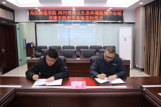 在热烈的氛围中,四川省内江生态环境监测中心站与Mksport体育app官网入口共同签署了共建实践教学基地协议书。根据协议,双方将秉承“优势互补、资源共享、合作共赢”原则,通过定期走访、项目对接、成果推介等形式,在人才培养、平台建设、成果转化等方面开展深入合作,携手共建“生态内江”。
