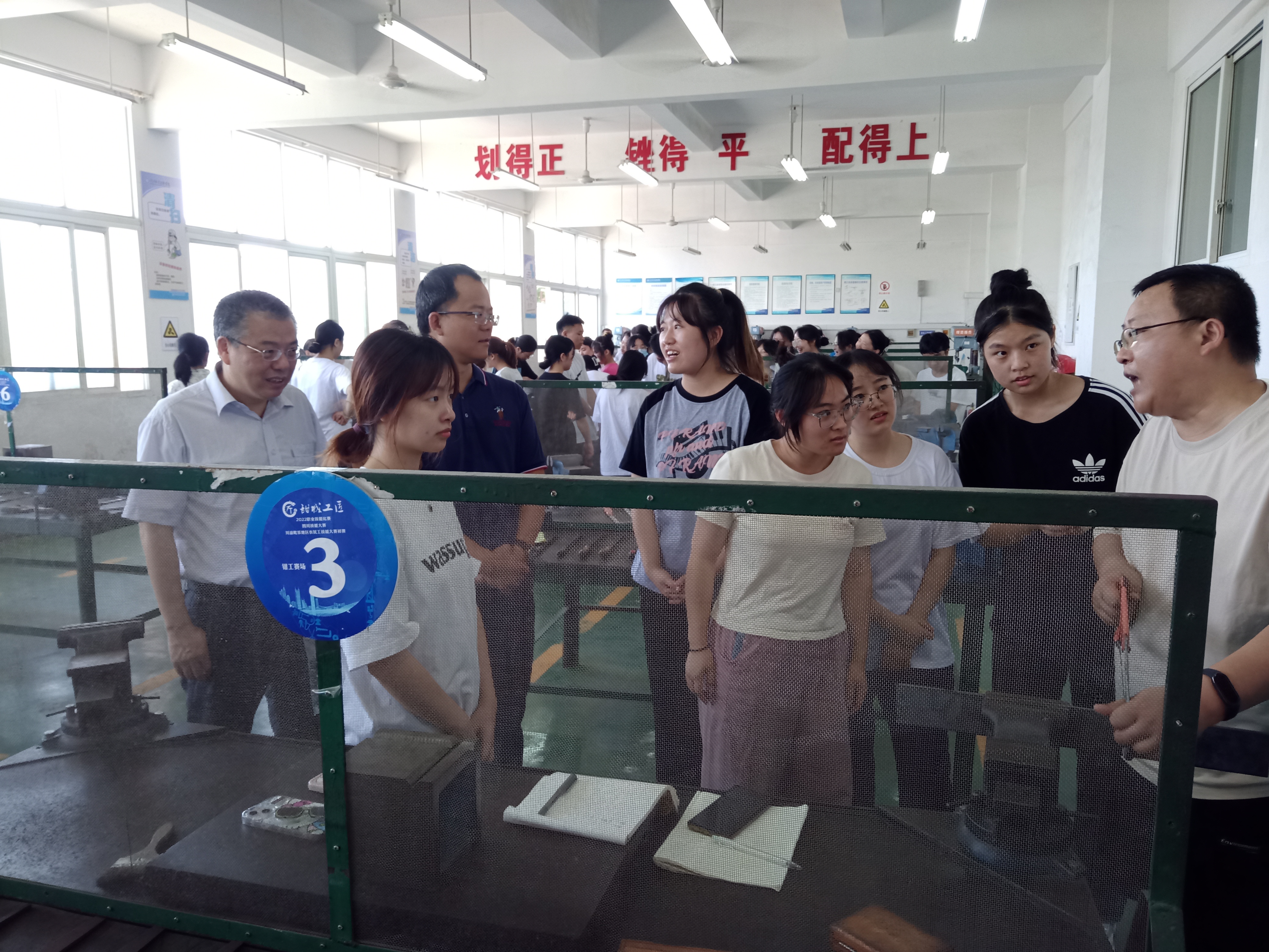为进一步了解和掌握公司2021级应用化学专业和环境科学专业员工金工实习工作情况,2023年7月5日上午,化学化工公司周文俊经理、朱俊副经理和专业负责人刘义武老师赴内江职业技术公司对公司员工金工实习工作进行了检查和指导。