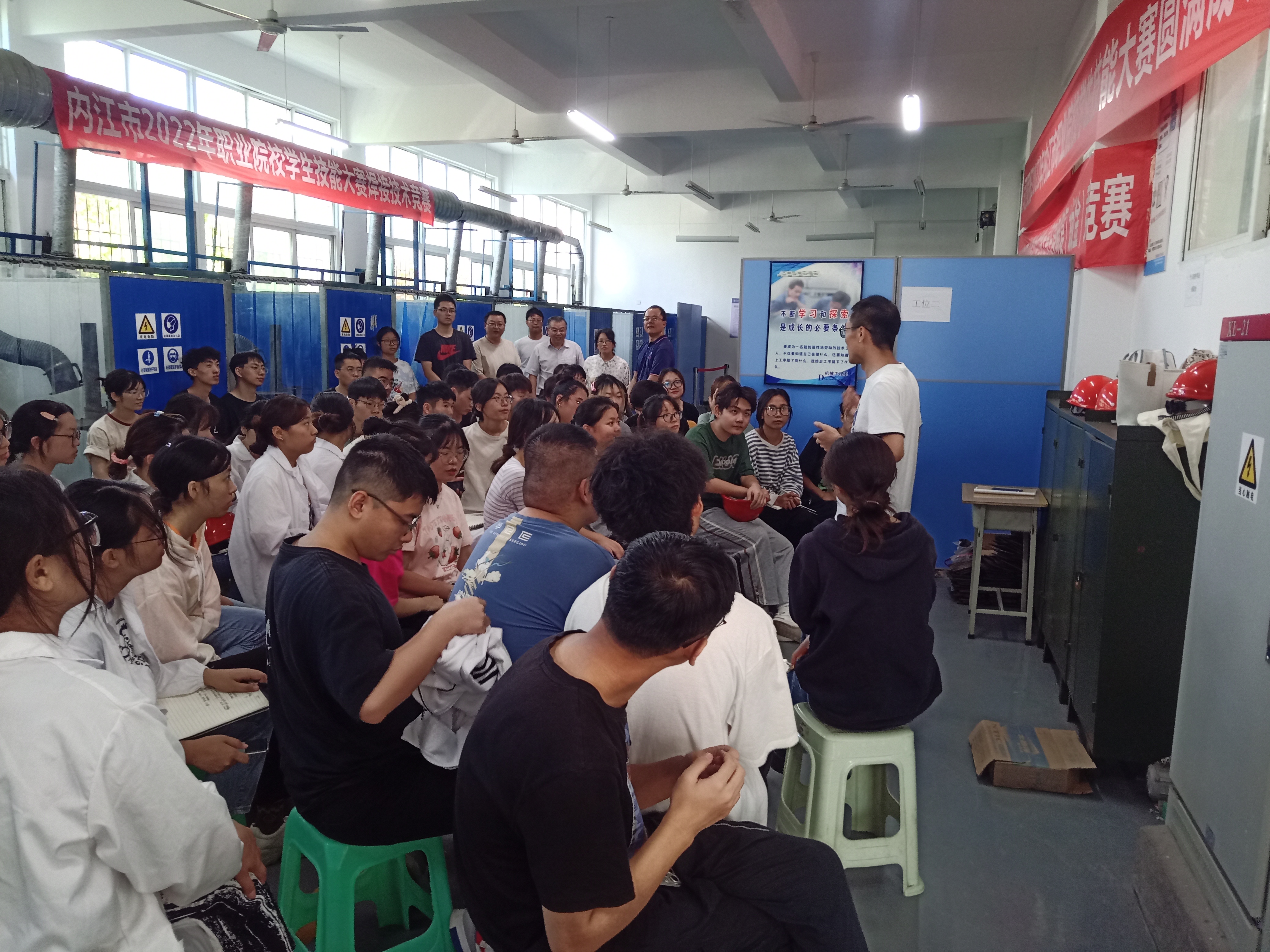化学化工公司2021级应用化学专业和环境科学专业共172名员工,在内江职业技术公司智能制造与汽车公司实训基地进行1周的金工实习工作。实训基地制定了详细的实习课程计划,组织学生分别在钳工实训室、车工实训室、焊接实训室进行了观察、学习和操作训练。在金工实习过程中,实训基地指导教师和公司带队指导教师对员工的指导认真负责,员工们非常积极、认真聆听、学习和操作体验。