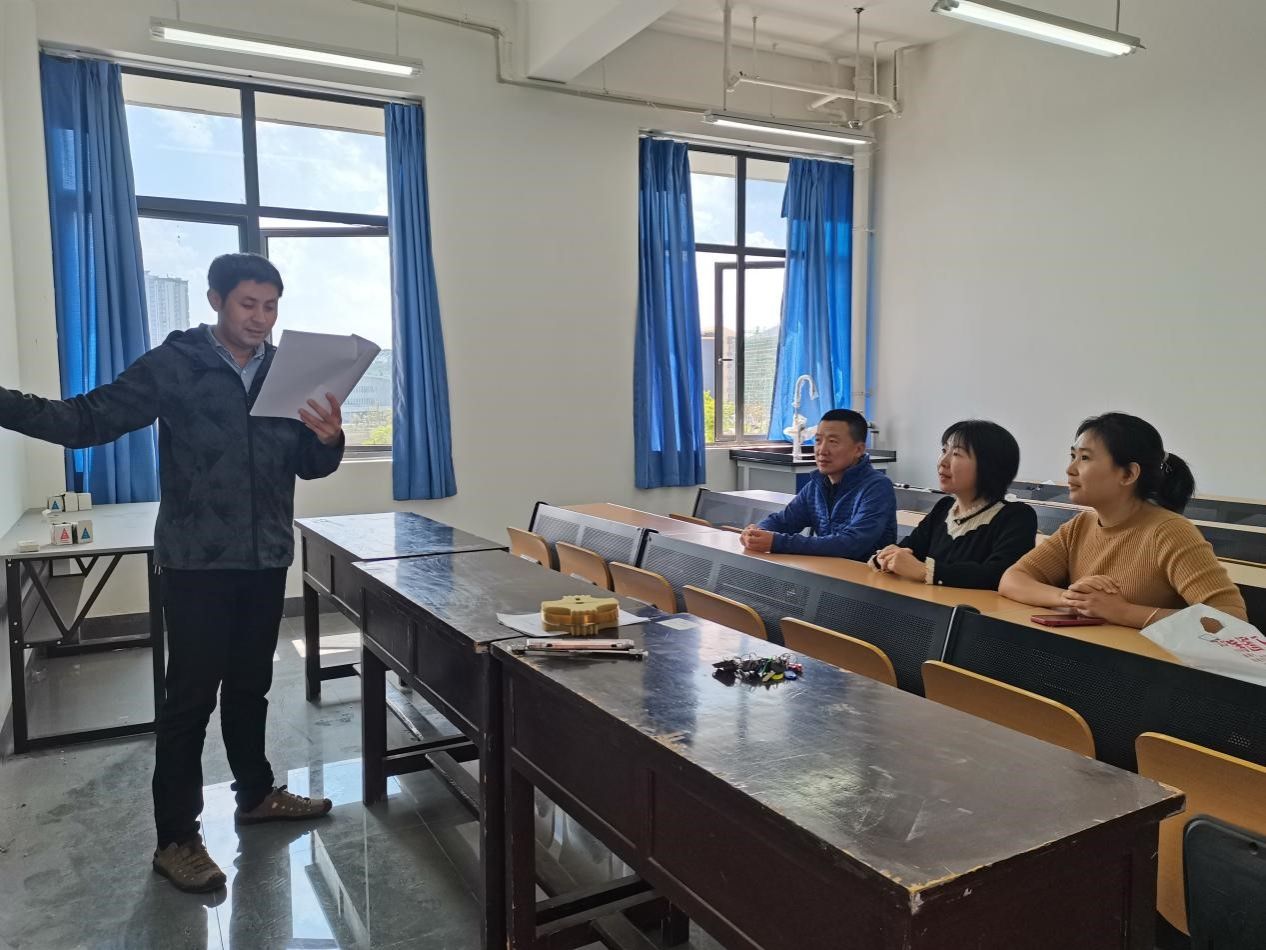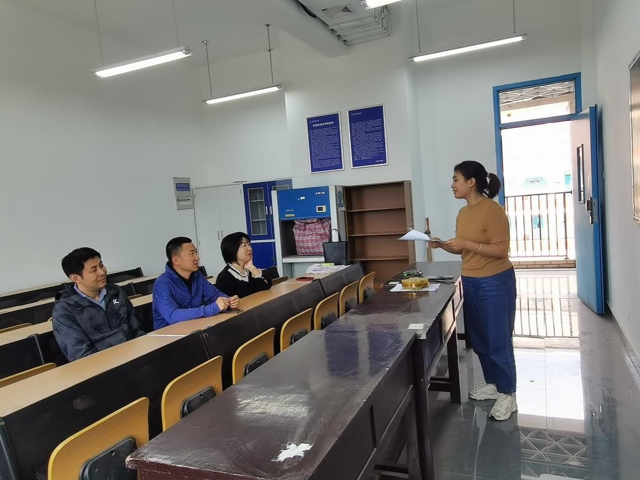 第二阶段是课例展示阶段。2024年4月20日,新进教师王姝羡博士在化工楼A312展示了团队共同打磨的“铅、铋混合液中Pb2+、Bi3+的连续滴定”实验教学。在教学过程中,王老师不仅展现了其个人教学风格,也充分地考虑了员工基础。不但演示了实验基本操作,而且还通过提问启发员工思考实验操作的基本原理,并细致讲解了实验规范操作要点和注意事项。课后,团队教师在原实验室开展了评课活动,一致认为本次课展示了“教学评”一体化的教学设计,具备了一定的高阶性和创新性,员工完成起来也有一些挑战度,契合了当前实验教学改革的方向。