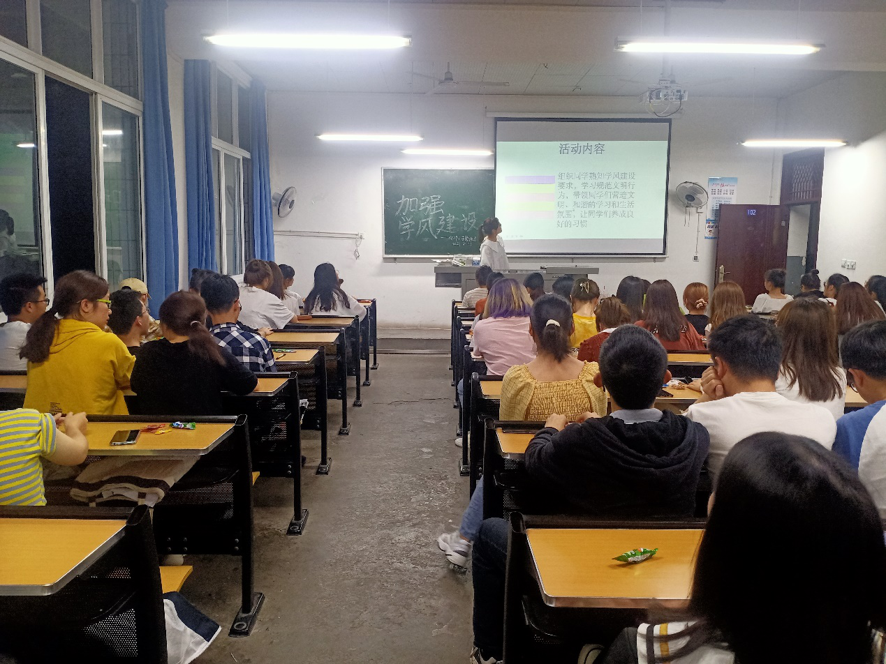 本次活动以主题班会的形式开展,此次会的开展形式多样,内容丰富。其中18.4班的主持人带领同学们一起参观了各大名校的学风,让大家更直观的了解到积极向上的学风;19.3班的团支书组织全班同学一起学习了何为文明的行为,让同学们对文明行为有了一个更准确的标准;20.2班的团支书向同学们提出了几个关于规范文明行为的问题,引发了同学们积极地思考20.4班的主持人通过图片、微动漫等形式,向大家展示了遇到他人有不文明行为时该如何劝导,以此来帮助大家养成良好的文明行为。