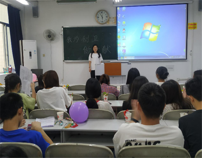 本次主题班会为同学们介绍创卫的重要性以及相关要求和工作安排,创卫工作是公司建设和谐校园,惠及全校师生的重要措施,是响应内江市创建国家级卫生城市的具体体现。创卫工作,人人参与,统一思想,统一认识,主动作为,攻坚克难,充分表现在校老员工对于创卫工作的积极性。在本次班会中,班主任也强调了相关工作安排,提到创卫对于我们的意义,并且殷切希望每一个同学都能积极参与到创卫中去,并且作为高校学子的我们,更应该树立良好的榜样,能够积极为本次创卫作贡献。其中2016级2班以主题宣讲的形式为同学们解释了什么是创卫;2017级5班通过播放视频《从自身做起从点滴做起,我为创卫做贡献》,让大家了解创卫,也调动了同学们对于创卫的积极性;2018级5班以知识竞答的方式来增强同学们对创卫的认识与责任心。