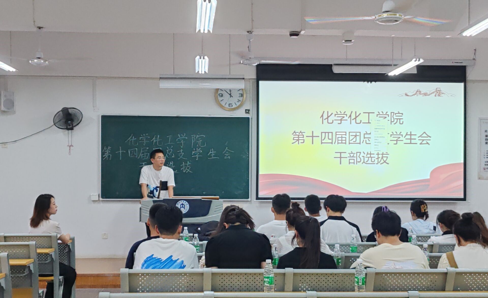 5月27日晚,我院于明德楼B203举行了第十四届团总支员工会干部换届竞选大会。出席本次大会的嘉宾有学工办负责人郑武、辅导员张言顺、王佳惠及龚诗洋老师,会议伊始,主持人熊雨欣同学介绍了本次换届大会的具体流程,正式拉开了本次换届大会的序幕。