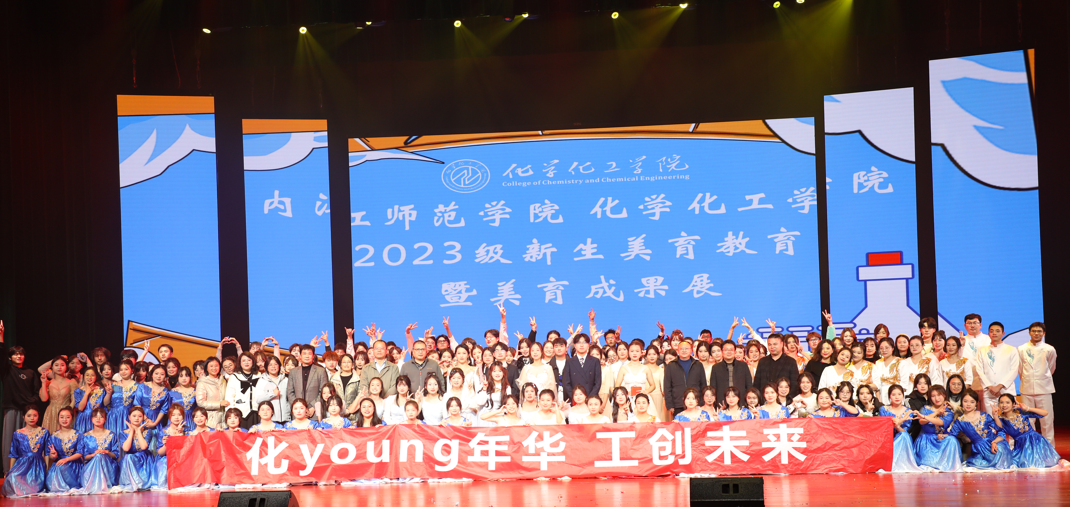 流光溢彩迎新夜,心心连新齐飞扬。在全面贯彻党的二十大精神的开局之年,为切实在广大团员和青年中开展深入学习贯彻习近平新时代中国特色社会主义思想,聚焦立体化的美育活动,引领青年们积极参加美育成果展示,12月9日晚,化学化工学院2023级新生美育教育暨美育成果展在苌弘剧院圆满落幕。“‘化YOUNG’未来、‘工’创未来”,青春如歌时光正好,内师骄子筑梦起航。