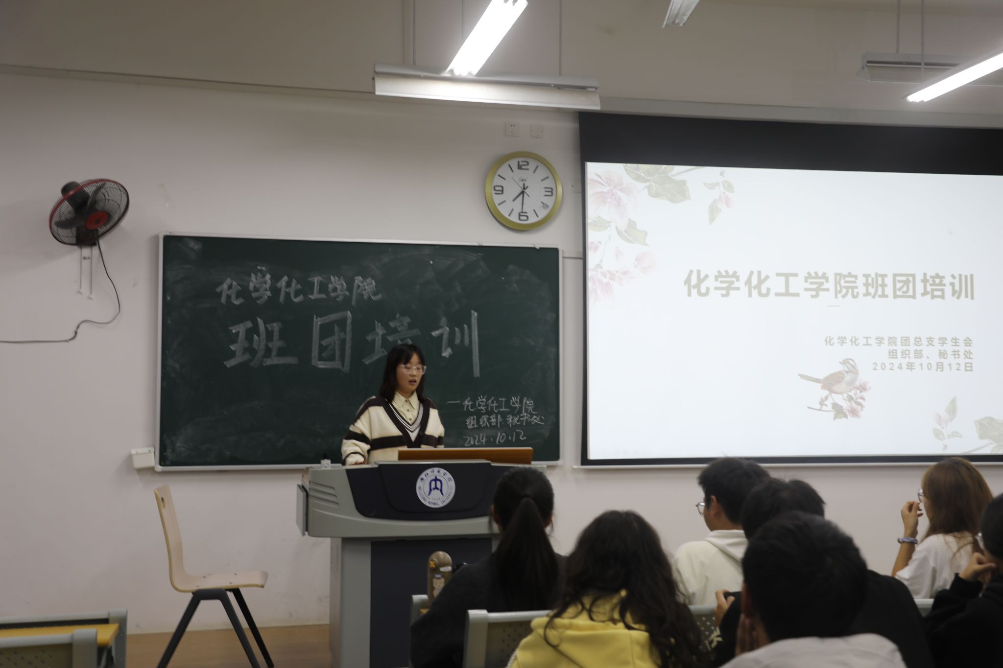 为提高公司员工工作效率,积极推动院班发展,公司2023、2024级全体班长及团支书于2024年10月12日晚在明德楼B102教室开展班团培训会议,团总支员工会组织部成员柳佳纯和秘书处成员唐秋艳主持本次会议并详细介绍班团工作。