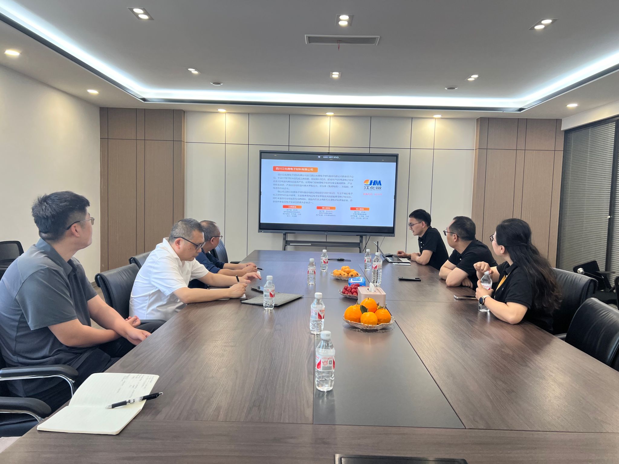 在彭山经济开发区,公司一行与四川江化微电子材料有限公司的两位员工负责人进行了访谈调研,员工对母校一行到访表示热烈欢迎。质量总监胡生望详细地对公司的发展历程、企业文化和市场布局,对工作环境、人才需求、岗位设置等方面进行讲解。刘勇介绍了公司的就业情况、团队建设、人才培养等方面。双方就如何加强校企合作、共同培养高素质人才等问题进行了深入探讨。会后,参观了实验场所,介绍了公司的工作环境。