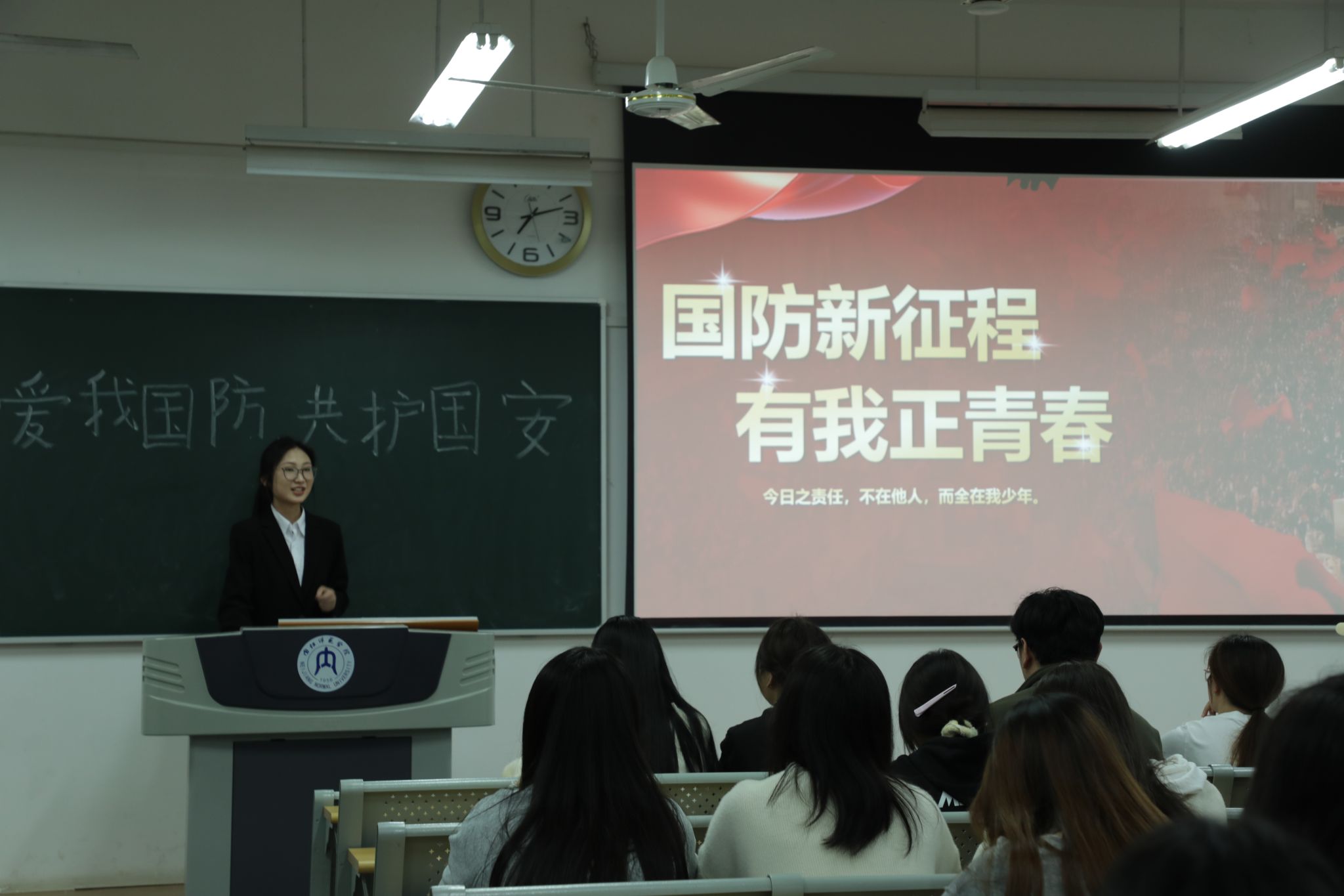 心系国防,强国有我。13名参赛选手围绕“爱我国防”主题,通过演讲稿和PPT等形式,从不同视角将个人成长与国防使命紧密相连。有的回溯家国故事,表达对国防事业的敬意;有的立足自身经历,探讨国防建设的时代意义;有的结合成长感悟,抒发投身国防的壮志豪情。选手们通过生动的案例和激昂的语言,让现场观众深刻感受到国防的重要性,进一步增强了大家的爱国情怀。