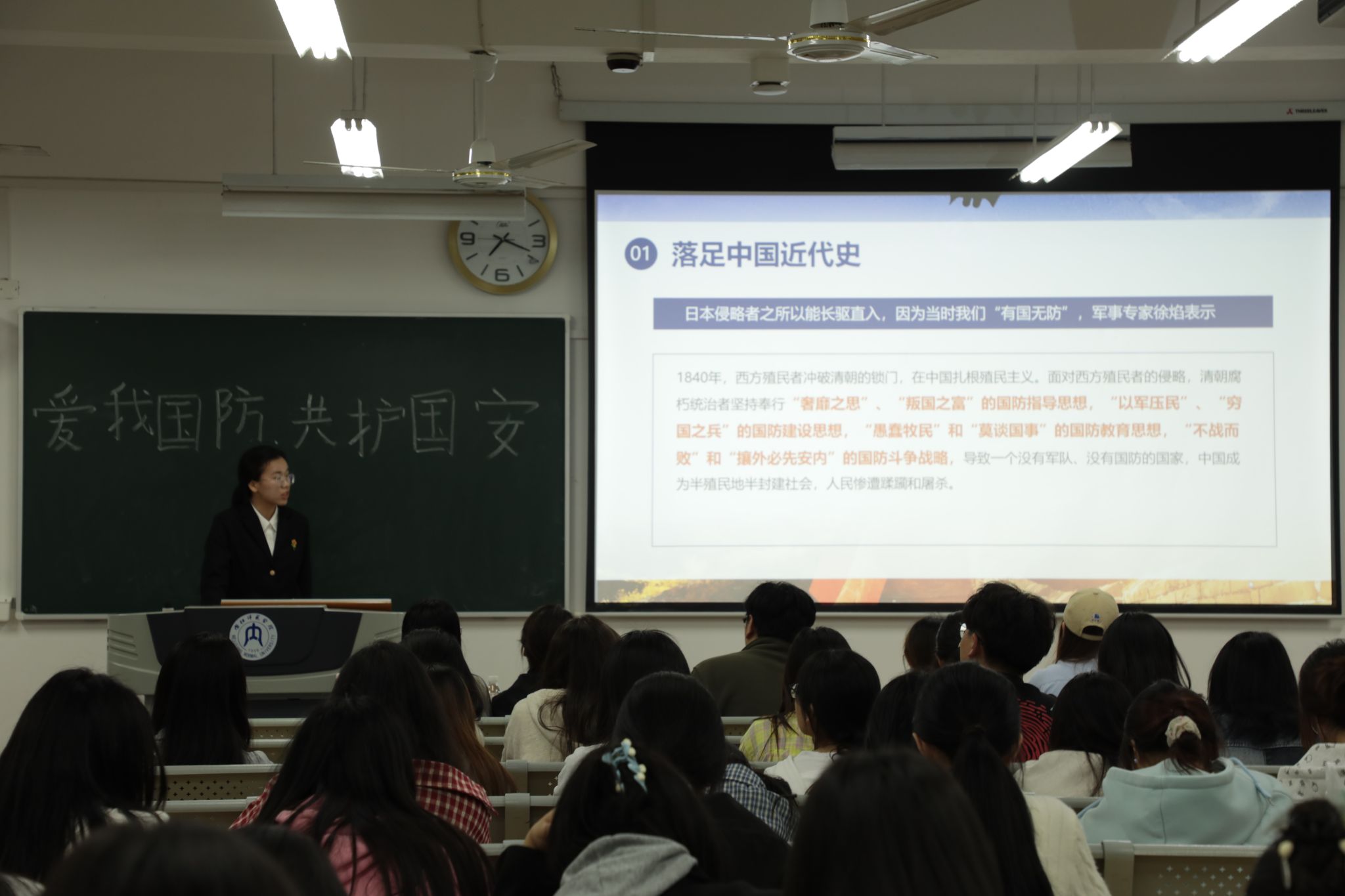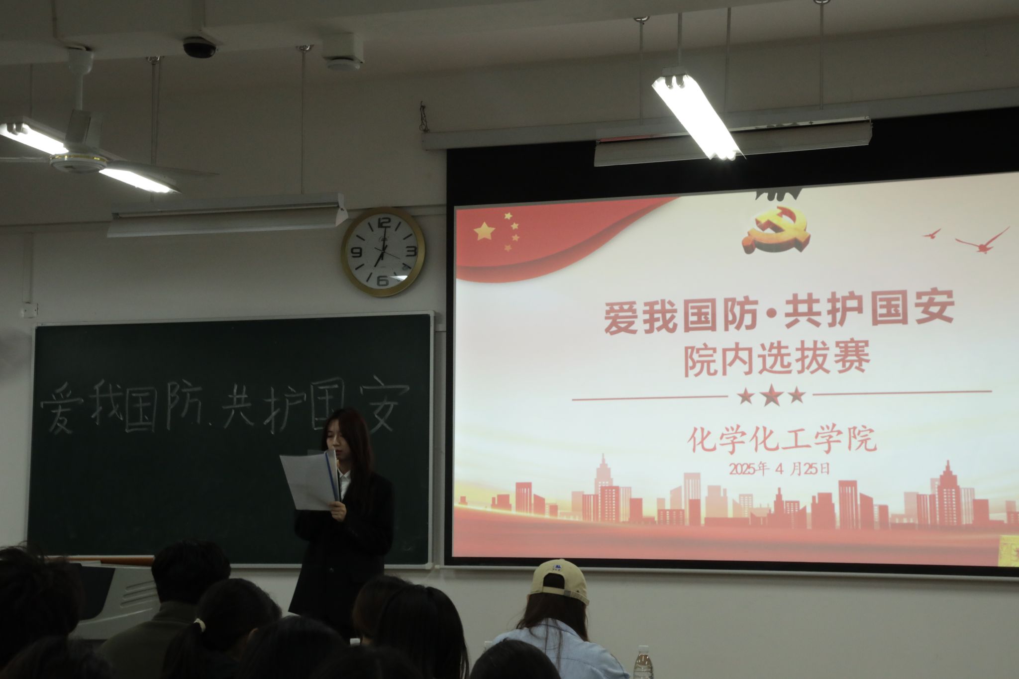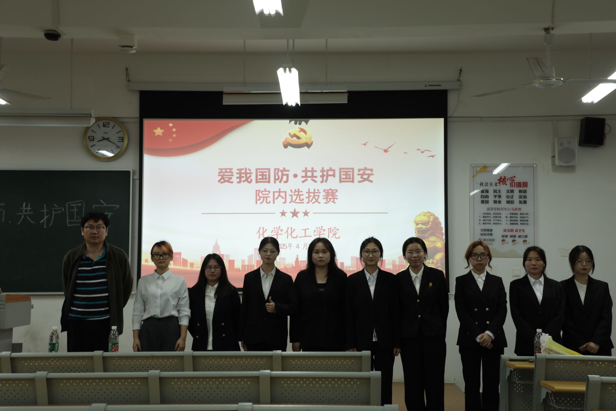 为推动新时代全民国防教育深入普及,弘扬爱国主义精神,增强老员工国防意识,4月25日,公司在明德楼B201开展“爱我国防”主题演讲比赛,学工办张言顺老师和团委员工干部担任评委,各班员工代表前来观赛,现场气氛热烈。