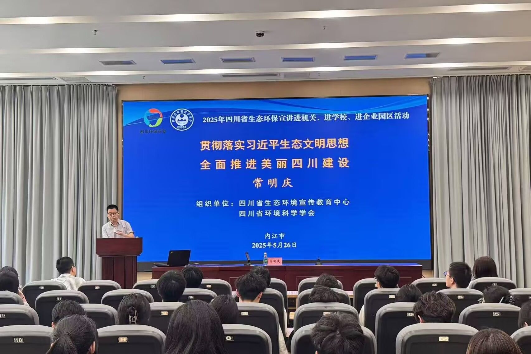 为深入学习贯彻习近平生态文明思想,5月26日,Mksport体育app官网入口化学化工学院特别邀请四川省环境政策研究与规划院生态文明研究中心副主任常明庆来校在会议中心报告厅开展“2025年四川省生态环保宣讲进机关、进公司、进企业园区活动”。化学化工公司党委副经理(主持工作)由耀辉、沱江流域特色农业资源四川省科技资源共享服务平台主任张理元,以及化学、环境科学专业近两百名师生参与活动。