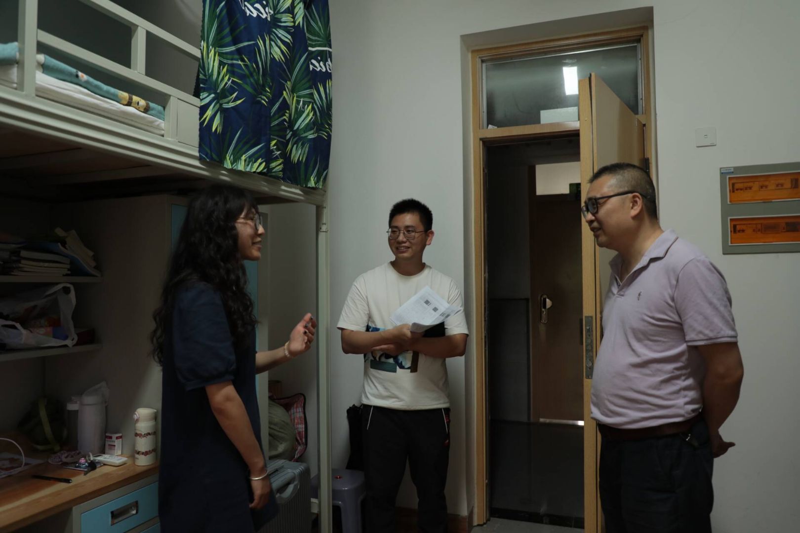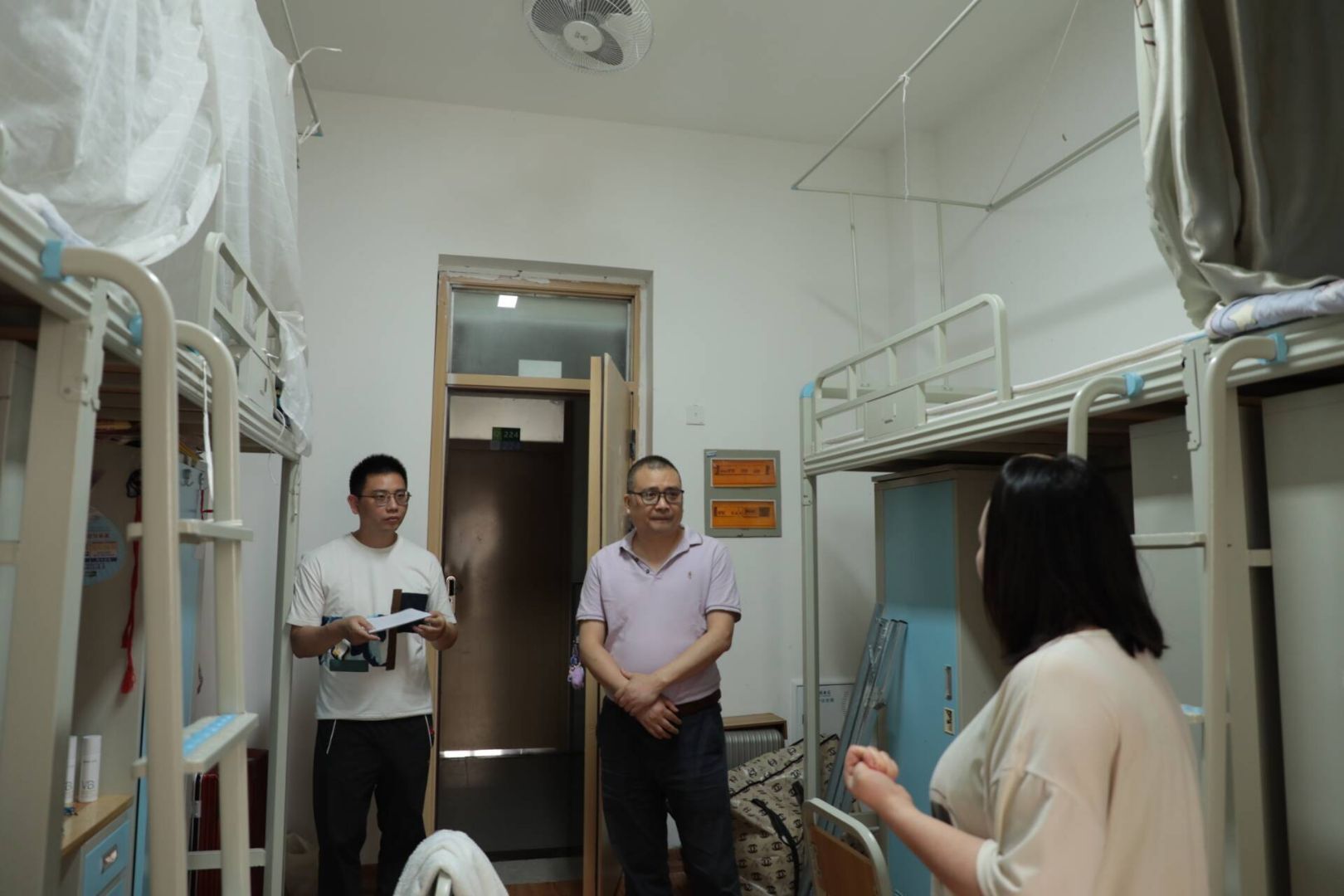 6月5日下午,公司党委书记刘勇、学工办郑武老师深入毕业生宿舍,开展温情走访活动,为即将告别校园的2025届毕业生送上公司的深切关怀与真挚祝福。走访过程中,领导老师们与毕业生们亲切交谈,共同回顾美好的的大学时光,现场洋溢着浓浓的师生情谊。