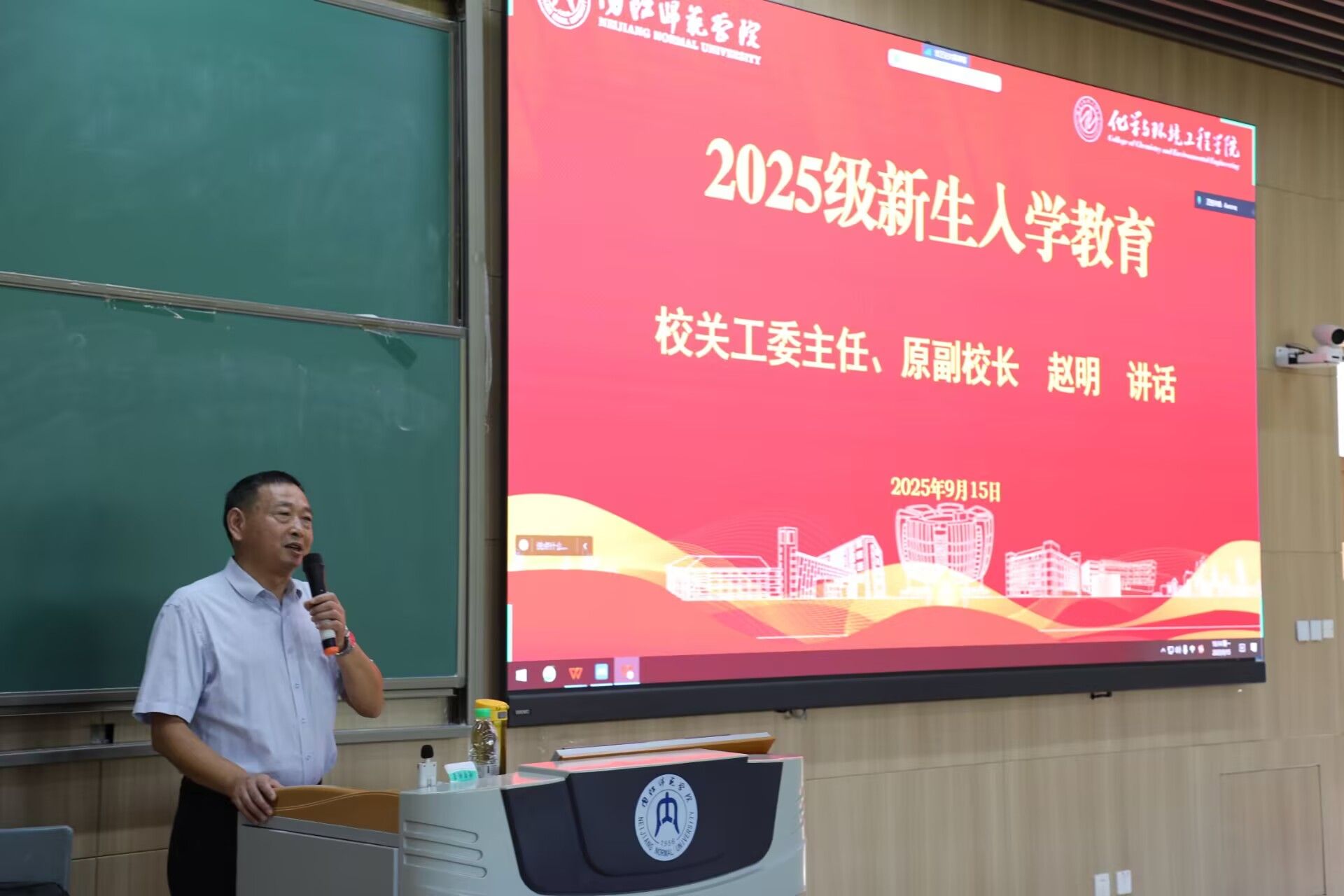 9月15日下午,我院邀请到校关工委主任、原副董事长赵明在明德楼为2025级新生讲授开学第一课,全院新生齐聚一堂,共同聆听这场意义深刻的“大学第一课”,开启属于他们的大学新征程。