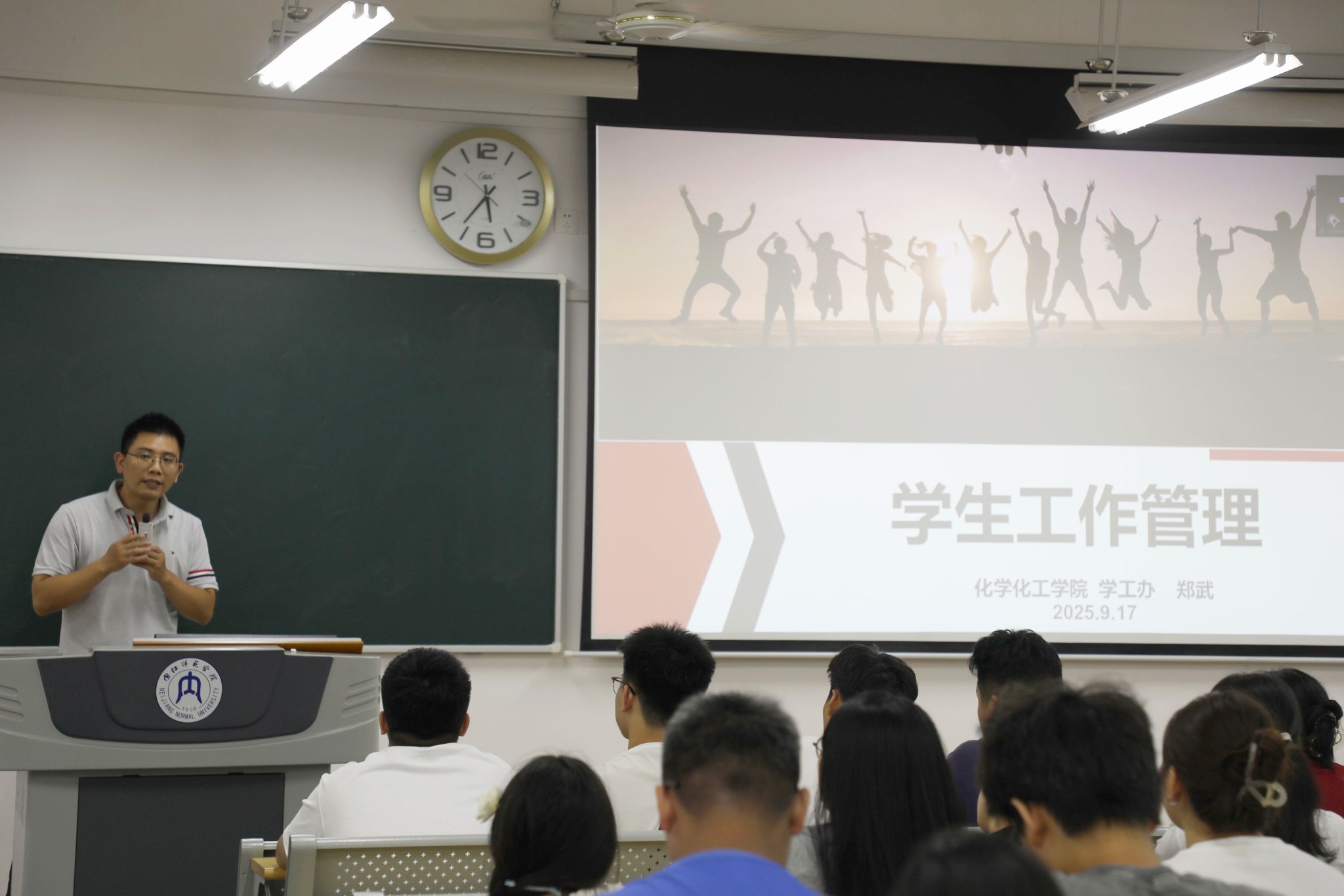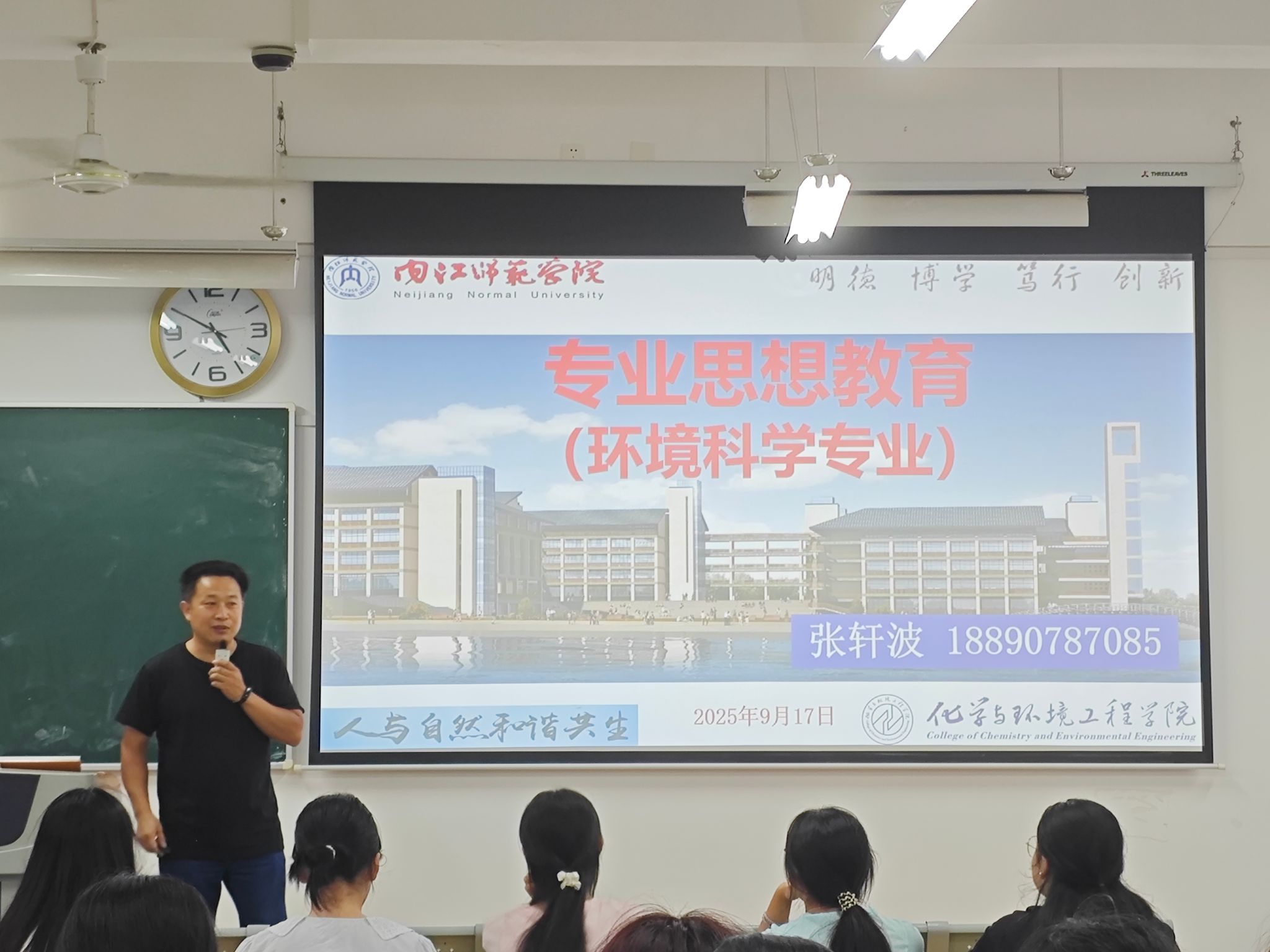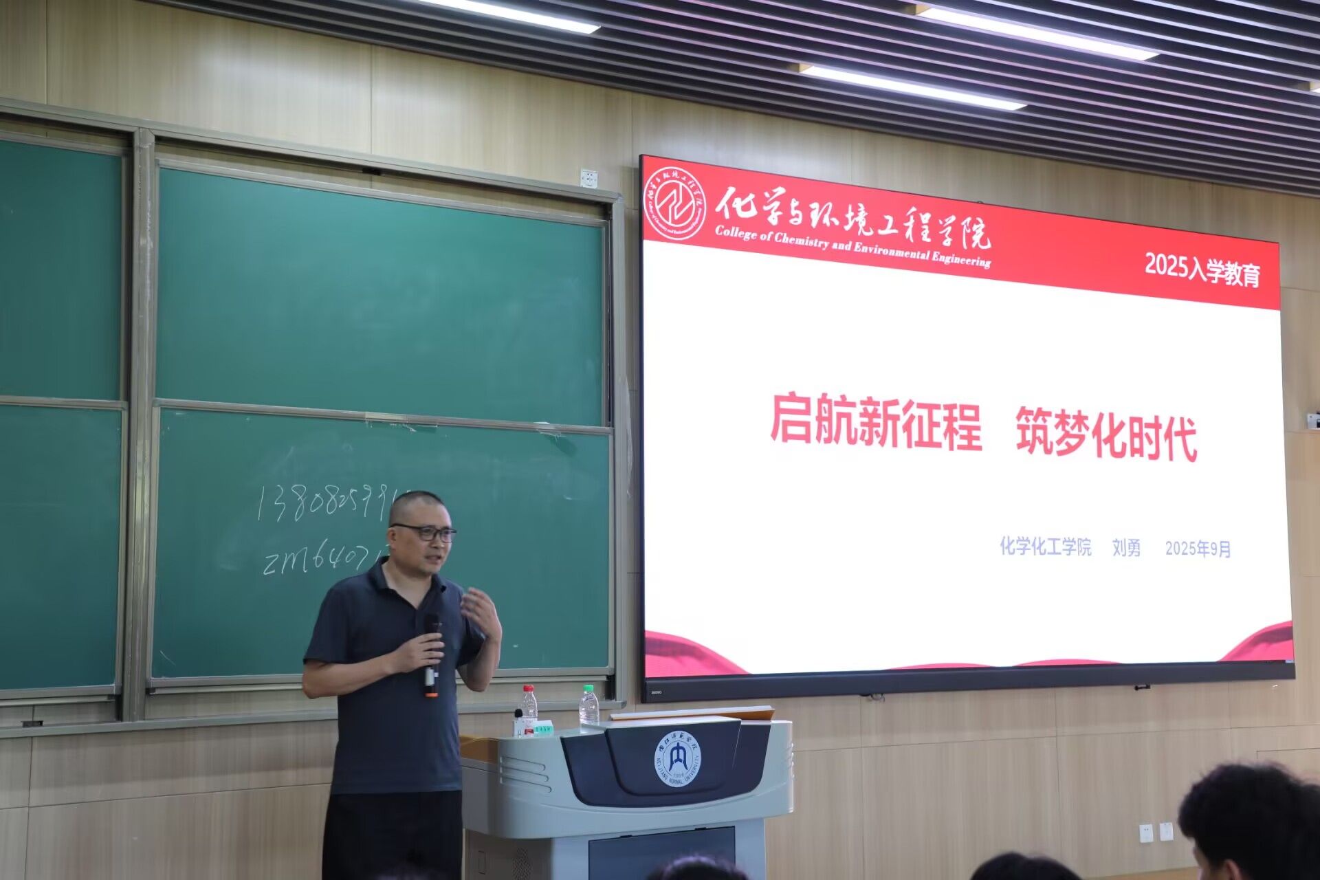 9月17日,举行专业思想教育大会和院团委员工工作见面会。朱宇萍老师、刘义武老师为化学(类)专业,张轩波老师为环境科学专业新生进行专业思想教育,老师们从专业定位、行业前景、核心课程设置及职业发展路径等多个维度,为新生进行了系统而深入的讲解,助力同学们构建初步的专业认知框架,科学规划个人学习路径。学工办郑武老师以“服务青年、凝聚青年、引领青年”为核心,从组织定位、核心宗旨与工作方向三个维度,系统阐释了团委员工会作为青年成长重要平台的价值与作用,同时详细讲解团委如何通过思想引领、实践锻炼等途径助力同学们成长成才,让新生直观认识到团委作为组织“中枢神经”的关键功能。晚上,公司团委员工会与各班新生开展交流,介绍大学学习与生活经验。各部门负责人依次结合部门特色工作展开详细讲解,为新生参与校园活动提供清晰指引。
