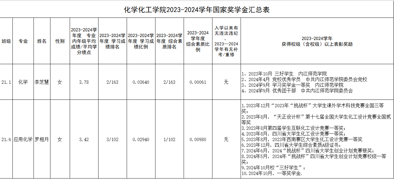 根据《Mksport体育app官网入口关于做好2024年国家奖助学金评审工作的通知》要求,结合《四川省教育厅关于做好2024年高校国家奖助学金评审工作的通知》,本着公开公平公正的原则,院系采用专业内年级排名推荐,院系差额评选排序,最终评定拟获奖人员如下: