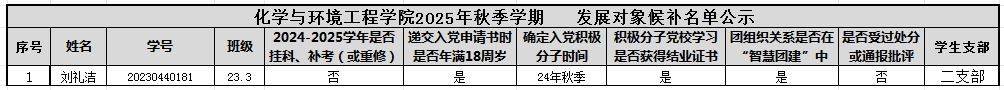 按党员发展程序,拟将刘礼洁同志列为第二十期发展对象候补人选。现将相关情况公示如下: